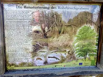 ![]() Informationstafel über die Renaturierung des Rohrbruchgrabens in der Hondelager Feldmark, gestaltet vom Förderkreis Umwelt- und Naturschutz Hondelage e. V. | ||