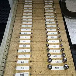 - spezielle, federbelastete Messgeräte mit eingesteckten Messkugeln