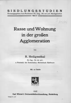 - ↑ Roman Friedrich Heiligenthal: Rasse und Wohnung in der großen Agglomeration. Hrsg.: Roman Friedrich Heiligenthal (= Siedlungsstudien. Band 8). Carl Winter’s Universitätsbuchhandlung, Heidelberg 1937, S. 8.