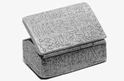 Auf den Außenseiten der Schachtel sind noch etwa 80 Schriftelemente, manche nur teilweise, zu erkennen. Auf der Innenseite befinden sich keine Zeichen, offenbar wurde die Tafel, bevor man sie auseinanderschnitt, auf der B-Seite glattgehobelt. Obwohl die Schriftzeichen wahrscheinlich mit einem Stahlwerkzeug eingraviert wurden, hatten weder Thomas Barthel noch Steven Fischer Zweifel an der Authentizität. In Barthels Buch „Grundlagen zur Entzifferung der Osterinselschrift“ von 1958 ist die Tabaksdose noch nicht verzeichnet.