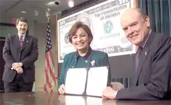 - ↑ a b Rosario Marin sworn in as 41st U.S. Treasurer ( vom 29. März 2015 im Internet Archive), Accounting Today, 3. September 2001
