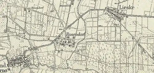 - ↑ Rosendorf im Geschichtlichen Ortsverzeichnis des Vereins für Computergenealogie, abgerufen am 27. August 2017.