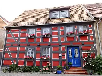 Das Bauwerk entstand in Fachwerkbauweise um 1800 und ist im Jahr 2015 eines der wenigen erhalten gebliebenen Gebäude der Stadt, die auch äußerlich ihre ursprüngliche Bausubstanz zeigen. 1902 brachten die damaligen Besitzer am Giebel mehrere Kacheln aus der Zeit um 1800 an. Die weißen Reliefs stammen von dem Gebäude am Markt 27. Der Keller des Gebäudes ist Experten zufolge deutlich älter. 2008 erfolgte eine umfangreiche Sanierung.