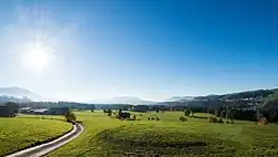 - im Westen (z. B. der Glatzbach) und Süden die Gemeindegrenze zwischen den Gemeinden Krumbach und Langenegg sowie der Badgraben (beim Heilbad Rossbad) und