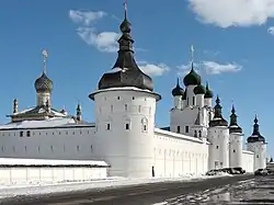 Der Rostower Kreml liegt am Ufer des Nerosees. Die mit elf Türmen versehene Festungsmauer ist 1,3 km lang, bis 12 m hoch und 2 m Stärke. Im Festungsinneren mit zirka 6 ha Fläche befinden sich folgende Gebäude: