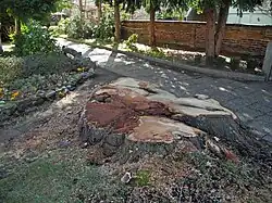 Mit Stand März 2023 war auch der Stamm abgetragen, es verblieb der Baumstumpf. Er ist Lebensraum für Holzzersetzer.