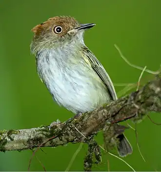 - Lophotriccus pileatus luteiventris Taczanowski, 1884[5] – Honduras, Costa Rica, Panama.