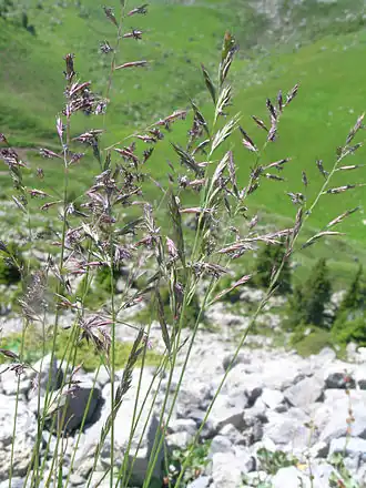 | Flachblättriger Rot-Schwingel | Festuca heteromalla Pourr. | Feucht- und Nasswiesen, subalpine Lägerfluren |