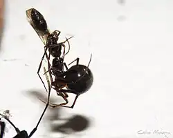 - ↑ Eduardo Goncalves Paterson Fox, Antonio Domingos Brescovit, Daniel Russ Solis, Carlos Massuretti de Jesus, Odair Bueno: Immatures of Nesticodes rufipes (Araneae , Theridiidae) Causing Considerable Damage to Ant Colonies in the Laboratory. In: Sociobiology. Band 53, Nr. 1, Januar 2009, S. 75–76, doi:10.6084/m9.figshare.7695518.v1 (researchgate.net [PDF; abgerufen am 2. Februar 2022]).