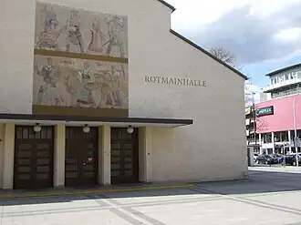 Die denkmalgeschützte Rotmainhalle (D-4-62-000-443), ein 1935 von Stadtbaurat Hans Schmitz erbauter, verputzter Stahlskelettbau mit Fassadenmalerei in der Hindenburgstraße 1 und das dazugehörende Nebengebäude Hindenburgstraße 3 (D-4-62-000-422) blieben erhalten und wurden in den Gebäudekomplex einbezogen.