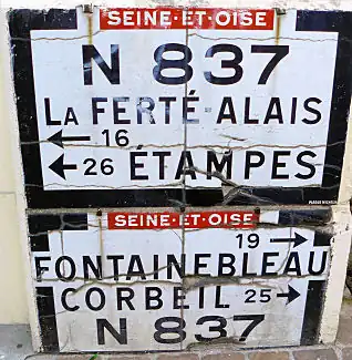 | Plaque Michelin N837 de 1934 à Milly-la-Foret (Essonne) | |