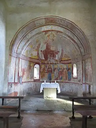 - trapezoidale Betkapelle mit Fresken (erstes Viertel des 17. Jahrhunderts) des Malers Giovanni Carlone[6]