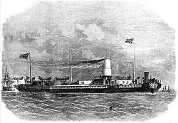 Die HMS Royal Sovereign war ursprünglich als Linienschiff ersten Ranges mit 121 Kanonen gebaut worden. Sie hätte sechzehn 20,0-cm-Kanonen, 114 32-Pfünder-Kanonen (15 kg) und eine 68-Pfünder-Kanone (31 kg) an Bord gehabt. Mit dem Aufkommen des Dampf- und Schraubenantriebs wurde der Umbau des Schiffes zu einem Schraubenschiff mit 131 Kanonen angeordnet, der am 25. Januar 1855 begann. Am 25. April 1857 wurde sie schließlich in Dienst gestellt. Sie hatte eine Verdrängung von 3765 Tonnen (3825 tn.l.), eine Deckslänge von 73,30 m (240 Fuß 6 Zoll) und eine Breite von 19 m (62 Fuß), eine Besatzung von 1100 Mann und eine Maschinenleistung von 780 PS.