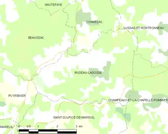 Neben den Ortskernen von Rudeau und Ladosse besteht die Gemeinde aus folgenden Weilern, Gehöften, einem Gutshof, Schlössern und Geländepunkten: