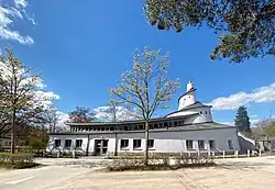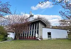 Im Bebauungsplan war weiter eine ein- bis zweigeschossige Bebauung vorgeschrieben.[6] Trotz des „plastisch-organischen Baustils“ sollten sich die Bauten durch geneigte Dächer und ortstypische Materialien in die Architektur der Walddörfer einfügen.[6] Die Entwürfe für die Christophorus-Schule mit Hauptgebäude (1991),[13] Therapiegebäude (1995) und Werkhof (1996) sowie für das gemeinsam genutzte Schmiedegebäude (1997) stammten von Klaus Schubert (Professor an der späteren HCU) in Zusammenarbeit mit Gerd Rückner (Kunstlehrer an der Rudolf Steiner Schule Hamburg-Nienstedten).[14]