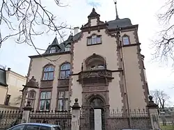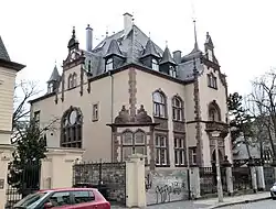 Das Haus, ein zwei- bis dreigeschossiger Putzbau, besitzt zahlreiche verschiedene Erker, Türmchen und Giebel was dem Gebäude ein schlossartiges Aussehen verleiht. Im Erdgeschoss befanden sich die Empfangs- und Repräsentationsräume, im Obergeschoss die Privat- und Schlafräume. Das Gebäude steht unter Denkmalschutz und wurde in das Denkmalverzeichnis der Stadt Halle aufgenommen.