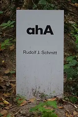 - ↑ Rainer Höynck: Präzis aber locker in: ahA – Ordnung visuell Grafik Design Rudolf J. Schmitt. Hrsg.: Rudolf Stegers. Wasmuth, Tübingen und Berlin 1995, ISBN 3-8030-2504-4.