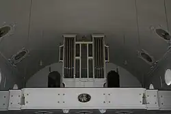 II/P 21 2018 Umsetzung vom Altarraum auf die Empore: Dabei wurde das ursprünglich asymmetrische Gehäuse durch Vergrößerung des linken Turmes symmetrisch umgebaut.