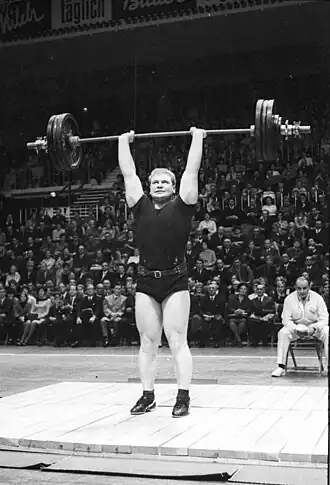 (OS = Olympische Spiele, WM = Weltmeisterschaft, EM = Europameisterschaft, S = Schwer- bzw. Superschwergewicht, Wettkämpfe bis 1972 im olympischen Dreikampf, bestehend aus Drücken, Reißen und Stoßen, ab 1973 im Zweikampf, bestehend aus Reißen und Stoßen)