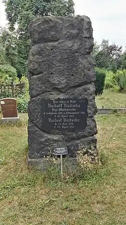 Rudolf Radecke starb 1893 im Alter von 63 Jahren in Berlin. Beigesetzt wurde er auf dem Friedhof III der Jerusalems- und Neuen Kirche vor dem Halleschen Tor. Als Grabstein dienen aufeinandergetürmte Felsbrocken.[1]