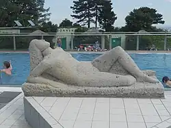 - Liegendes Mädchen, Brunnenplastik, Sommerbad Krapfenwaldl, Wien 19 (um 1952)