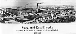 - ↑ Emaillefabriken 1869–1914 in Rüdiger Segenbusch: Lübecker Industriekultur, Zeitenwende – Fabriken in Lübeck, Lübeck 1993, Verlag Schmidt-Römhild, ISBN 3-7950-0114-5, S. 93–94.