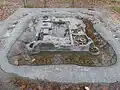 Als im Jahr 2000 die Renaturierung des direkt östlich gelegenen Quellgebiets der Seymaz begann, gab dies dem Kantonalen Archäologischen Dienst den Anlass zu Ausgrabungs- und Präservationmaßnahmen. Er stieß dabei dank detaillierter Hinweise aus einem Text von 1339[16] auf Überreste für die hölzerne Konstruktion, die der steinernen Befestigung vorausging.[17] Die Arbeiten dauerten zwölf Jahre lang an.[15] Auf der Grundlage von 3D-Fotoerfassungen wurde ein Miniaturmodell der Ruinen aus Bronze erstellt, das dem Besuchspublikum zusätzlich zu zahlreichen Informationstafeln einen Überblick verschafft.[15]