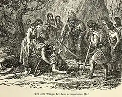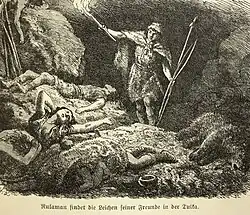 Dieser hat durch Späher herausgefunden, wo sich Rulaman und die alte Parre verstecken und greift die Höhle mit einer Gruppe Kalats an. Parre kann die Angriffe zurückschlagen, indem sie die Leiter der Angreifer umstößt und Vipern nach ihnen wirft. Später stürzt sie sich in den Abgrund und reißt dabei den Druiden mit in den Tod. Früher hatte sie Rulaman einmal prophezeit, er werde dereinst Anführer der Kalats werden.