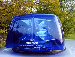 Blaue Rundumkennleuchten und anderes blaues Blinklicht (umgangssprachlich Blaulicht) werden im Straßenverkehr genutzt, um auf Einsatzfahrzeuge hinzuweisen. Es warnt andere Verkehrsteilnehmer vor Einsatz-, Unfall- und Gefahrenstellen sowie Einsatzfahrten und wird auch bei der Begleitung von Kolonnenfahrten benutzt. In Deutschland wurde das Blaulicht im Jahr 1935 eingeführt. Um Anforderungen des Luftschutzes zu erfüllen (Verdunkelung), wurde damals festgestellt, dass die beste Abblendung bei genügend weiterer Sichtbarkeit dunkles Blaulicht darstellt.[1] In Deutschland und in Österreich (nach dessen Anschluss) beruht die Einführung des Blaulichtes auf einem Runderlass des Reichsführers SS im Mai 1938, der sowohl für die Polizei als auch für die Feuerlöschpolizei galt.[2]