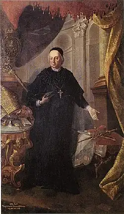 Ferner wurde er im Jahre 1708 auch zum Präsidenten des Reichshofrates, dem höchsten Amt am Kaiserhof berufen, trat diese Stelle jedoch aufgrund des Widerstands der protestantischen Reichsstände nie an und verzichtete 1713 endgültig auf das Amt.[3]
