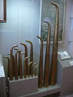 Die Studiensammlung des Musikinstrumentenmuseums Leipzig enthält einige russische Hörner aus der Stadtkirche Weißenfels, die um 1820 in Russland angefertigt worden sind.[13]