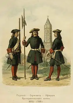 - ↑ Angus Konstam: Die Armee Peters des Großen, Brandenburgisches Verlagshaus, 2010, ISBN 978-3-941557-31-4, S. 15; deutsche Übersetzung der englischen Originalausgabe: Peter the Great's Army, Osprey Publishing Ltd, Midland House 1993