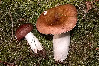 | Bereifter Leder-Täubling | Russula carminipes | J. Blum (1954) |