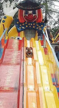 Bei einer Wasserrutsche verringert Wasser die Reibung auf der Rutschfläche zwischen der rutschenden Person und der Rutschfläche zusätzlich. Wasserrutschen findet man in Schwimm-, Freibädern und neuerdings auch auf Kreuzfahrtschiffen.[2]