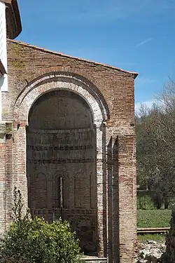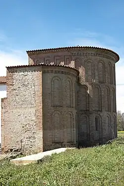 Die Hauptapsis und die beiden seitlichen Apsiden haben einen halbkreisförmigen Grundriss. Die Außenmauern sind mit Blendarkaden verziert. Unter dem Dachansatz verläuft ein Sägezahnfries. Das Chorhaupt weist große Ähnlichkeiten mit den zeitgenössischen Mudéjar-Kirchen im damaligen Königreich León auf wie San Lorenzo und San Tirso in der nordspanischen Stadt Sahagún.