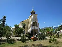 Vor der Kirche befindet sich ein Gedenkstein mit Kreuz, das an das 500-jährige Jubiläum der Evangelisierung Timors 2015 erinnert.