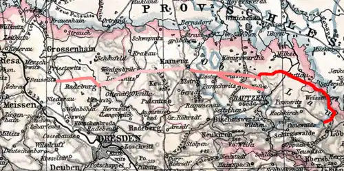 - Eine südliche Variante sollte in Kleinwelka an der Sekundärbahn Bautzen–Hoyerswerda beginnen und über Sollschwitz und Räckelwitz nach Kamenz führen. Dort sollte die Linie in die vorhandene Strecke Kamenz–Bischofswerda einmünden. Die Strecke Bautzen–Kleinwelka sollte wegen des erwarteten Verkehrszuwachses zweigleisig ausgebaut werden.