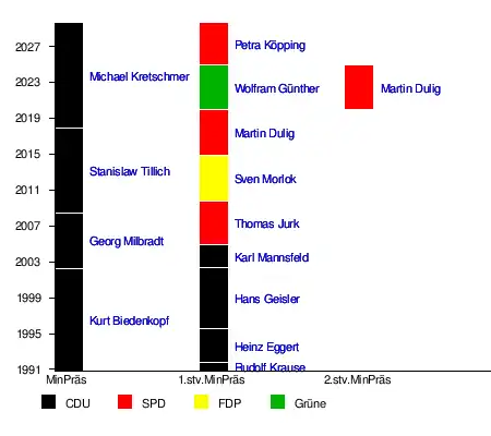 | CDU, Grüne, SPD | 2019–2024 | Kabinett Kretschmer II | |