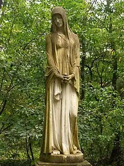 - Heinrich Waderé: Trauernde im Mausoleum Caspary, Kapellenblock (Das Mausoleum wurde für die Familie des Fabrikanten Caspary von der Charlottenburger Architektengemeinschaft Mohr & Weidner entworfen.)[21]