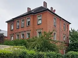 Um 1900 wurde der Bereich südlich der Erlanger Straße baulich erschlossen. Bereits aus dem Jahr 1889 stammt die Rathenaustraße (vor 1947: Kasernstraße bzw. Straße des 7. Infanterieregiments)[12] als nördliche Begrenzung des Kasernenviertels. Am Nordrand der Rathenaustraße wurden im Zuge des Kasernenbaus im Baustil der Kasernen Häuser errichtet, in denen Offiziere mit ihren Familien in gehobenem Wohnstil lebten. 1893 wurde die Karlstraße (seit 1947: Albert-Preu-Straße),[13] 1897 wurden die Sedanstraße (seit 1947: Oswald-Merz-Straße)[14] und der östliche Abschnitt der Rupprechtstraße[15] angelegt. Die Bismarckstraße entstand, zunächst zwischen der Karl- und der Sedanstraße, im Jahr 1901.[16]