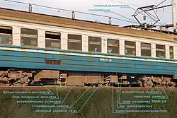 Die Ausstattung der Fahrzeuge ist am besten auf dem beigelegten rechten Foto ersichtlich. Auf jedem Motorwagen sind vier Traktionselektrofahrmotoren für Gleichstrom angeordnet. Die Motoren sind in zwei Gruppen von je zwei Fahrmotoren in Reihenschaltung vereinigt, die Gruppen sind parallel angeordnet. Die Fahrmotoren erhalten ihre Speisung von dem Kontaktnetz über: den Stromabnehmer vom Typ Л-13У01 (L-13U01) oder Л-14М01 (L-14M01), den Traktions-Transformator, den Kraftschalter mit der Bezeichnung КСП (KSP), der Gleichrichtereinheit, dem Glättungsreaktor und den Linien-Kontaktoren. Der Kraftschalter dient für die Regulierung der Spannung, die Gleichrichtereinheit und der Glättungsreaktor für die Umwandlung von Wechselstrom in Gleichstrom, die Linien-Kontaktoren dienen für das Anschließen bzw. Abschließen des Stromes.