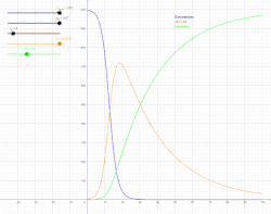 wobei , und Diffusionskonstanten sind. Auf diese Weise erhält man eine Reaktions-Diffusions-Gleichung. (Damit die Einheiten korrekt sind, muss der Parameter modifiziert werden.) SIR-Modelle mit Diffusion wurden beispielsweise zur Beschreibung der Ausbreitung der Pest in Europa verwendet.[17] Erweiterte raumzeitliche SIR-Modelle ermöglichen die Beschreibung von kontaktreduzierenden Maßnahmen (social distancing).[18]