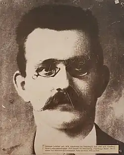 1910 wurde die sozialistische Zeitung Vorarlberger Wacht gegründet und in der Anfangszeit vor allem vom engagierten Sozialisten und Schriftsetzer Hermann Leibfried (1878–11. Oktober 1918) geprägt.[18][34] Leibfried musste sich sehr untergriffigen Anschuldigungen aussetzen lassen. So bezeichnete ihn das Vorarlberger Volksblatt während des Wahlkampfes 1907 als fremden,[97] jüdischen Sozialdemokraten schlimmster Sorte und obwohl die Sachlage klar war, wurde der verantwortliche Redakteur des Volksblattes, Wilhelm Fritz, von den Geschworenen im Gerichtsverfahren freigesprochen. Zum Jahreswechsel 1912/1913 versuchte die Gemeinde Dornbirn Hermann Leibfried wegen bescholtenem Lebenswandel auszuweisen.[98] Leibfried lebte seit Jahren mit der Witwe von Johann Coufal (Maria) zusammen und hatte mit ihr zwei Kinder. Die versuchte Ausweisung, die schlussendlich fehlschlug, hatte politische Motive und sollten ein Weitererscheinen der Vorarlberger Wacht verunmöglichen. 1914 heiratete Hermann Leibfried Maria Coufal.[99] Nach dem Verbot der Sozialdemokratischen Partei wurde die politische Orientierung der Zeitung ab dem 20. Februar 1934 an das Regime der Vaterländischen Front angepasst (Austrofaschismus). Nach der Machtübernahme der Nationalsozialisten in Österreich wurde die Vorarlberger Wacht mit der Ausgabe vom 12. März 1938 eingestellt.