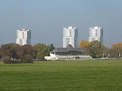In der Saaleaue befindet sich auch die hallesche Pferderennbahn mit ihrem imposanten, 1913 errichteten Tribünengebäude.
