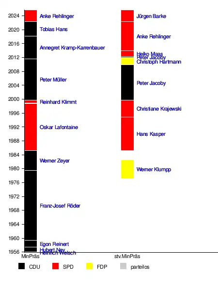 | Jürgen Lennartz | CDU | Staatssekretär, Chef der Staatskanzlei und Bevollmächtigter des Saarlandes beim Bund | 2012–2019[6] |