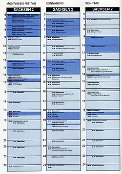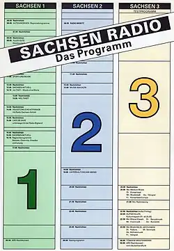 - ↑ Programmfaltblatt SACHSEN RADIO, Presse/Öffentlichkeitsarbeit, 8 Seiten, Leipzig 1991