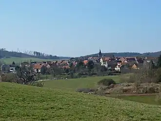 - Gottfried Ganßauge, Walter Kramm, Wolfgang Medding: Die Bau- und Kunstdenkmäler im Regierungsbezirk Kassel. Neue Folge Band 3: Kreis des Eisenberges. Bärenreiter, Kassel, 1939 Digitalisat online, S. 204–210.