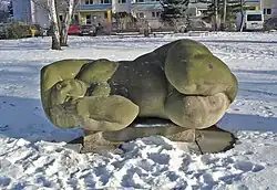 Auf den Grünflächen entlang der Sachsenallee, die den Platz mit dem Güntzplatz verbindet, sind Plastiken aufgestellt. Auf der Ostseite der Straße steht die Sandsteinplastik „Große Liegende“ von Peter Makolies aus dem Jahr 1975 und auf der Westseite ein Sandsteintorso von Michael Göttsche.