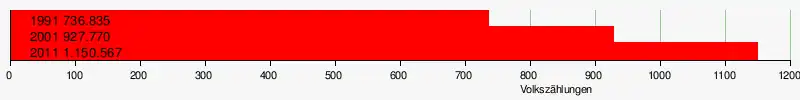 | Einwohner | 269.359 | 280.249 | 267.749 | 306.039 | 333.540 | 346.615 | 414.277 | 507.180 | 615.599 | 736.835 |