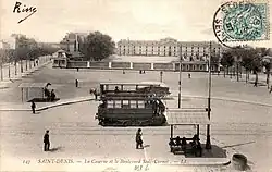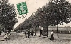 Auf dem an den Place du 8 Mai 1945 anschließenden Gelände, auf dem sich heute mehrere Bildungseinrichtungen und ein kleiner Park befinden (Lage), standen noch bis Mitte 1969 die Gebäude der Schweizer Kaserne.[4][5] Die von 1754 bis 1756 unter Ludwig XV. von dem Architekten Charles-Axel Guillaumot (1730–1807) erbaute Kaserne, die baugleich war mit der Kaserne in Rueil-Malmaison und der Caserne Charras in Courbevoie, diente wie die beiden anderen der Unterbringung der Schweizer Garde.[6]